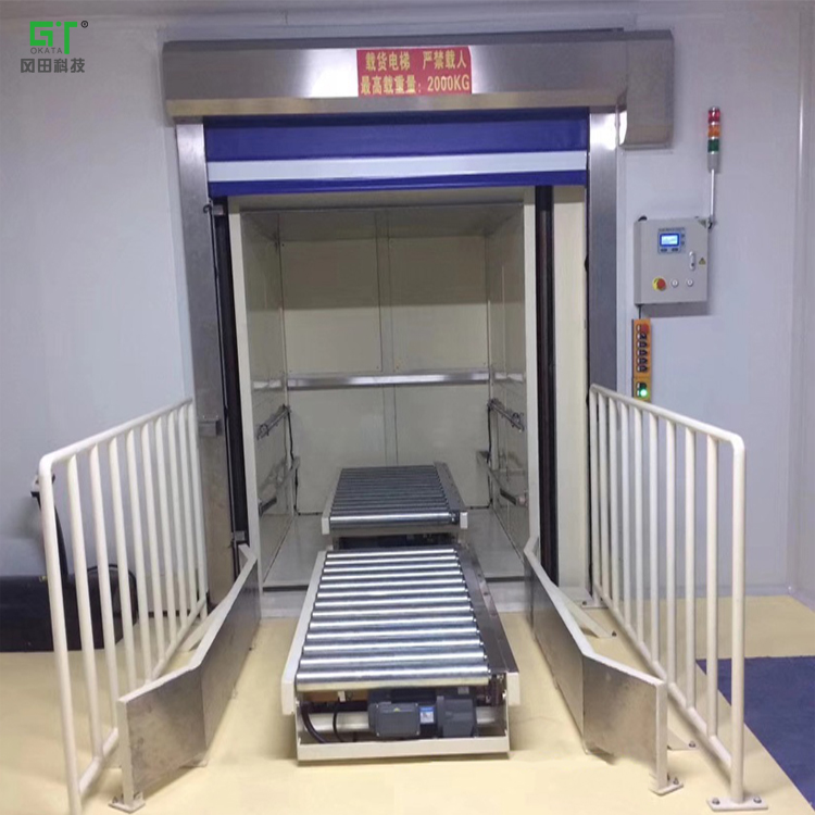 1、轎廂、樓面帶輸送線或鏈板線,將樓面貨物直接輸送至轎廂,轎廂再送至相應樓層。