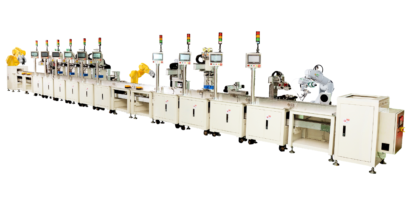 利用PLC實(shí)現(xiàn)人機(jī)信息交換,由PLC控制機(jī)械手及相關(guān)機(jī)構(gòu)準(zhǔn)確、高效、有序的動(dòng)作,從而實(shí)現(xiàn)產(chǎn)品的自動(dòng)焊接測(cè)試,鎖附等作業(yè)。通過(guò)實(shí)施本方案,使產(chǎn)品品質(zhì)得到有效提升、節(jié)約人力及管理成本,最終為企業(yè)提高生產(chǎn)效率及市場(chǎng)競(jìng)爭(zhēng)力,產(chǎn)能可達(dá)到1000PCS/H,節(jié)省人工10人。